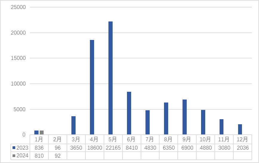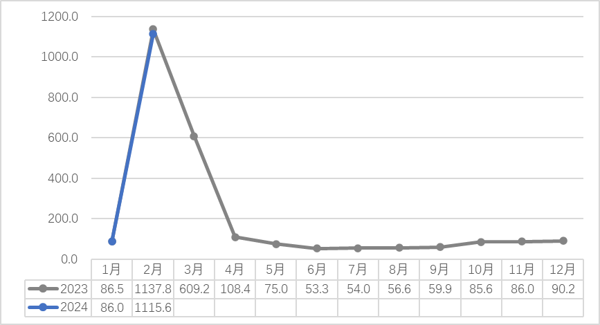 2023-2024(2月)浙南茶叶市场交易量(吨)