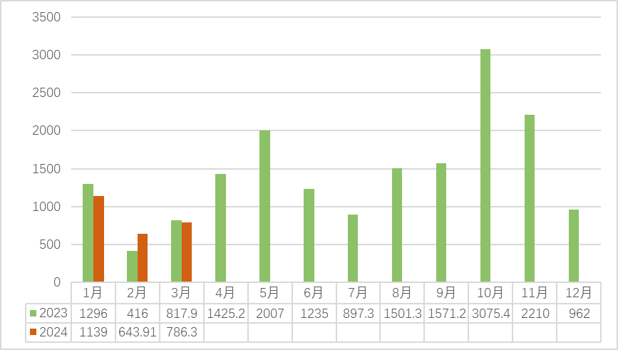 2023-2024(3月)安溪中国茶都铁观音交易量(吨)