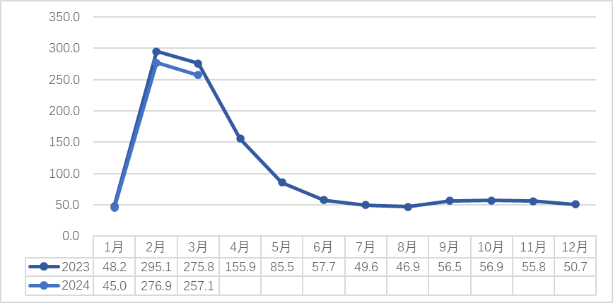 2023-2024(3月)浙南茶叶市场交易量(吨)