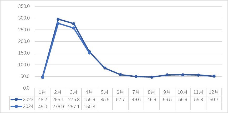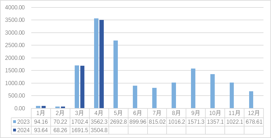 2023-2024(4月)新昌中国茶市交易量(吨)