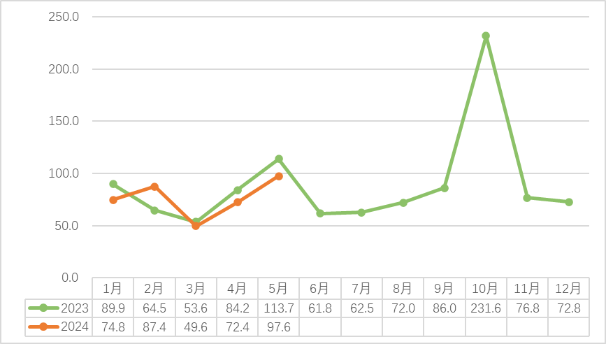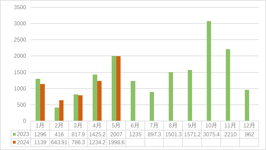 2023-2024(5月)安溪中国茶都铁观音交易量(吨)