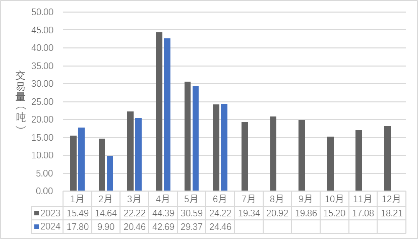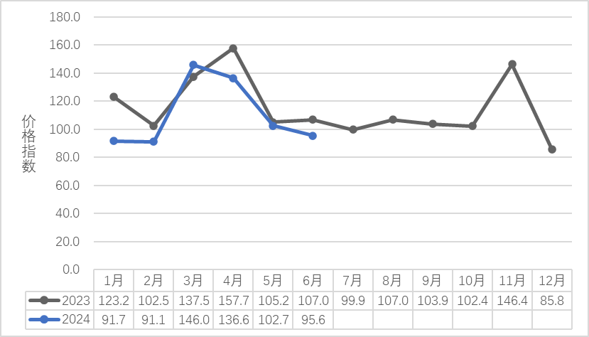 三、6月份市场单价为1962.65元/千克,较去年同期市场每公斤单价1973.78元相比下降了11.13元,同比下降了0.56%。