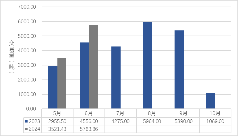2023-2024(6月)横州茉莉鲜花指数信息采集合作单位市场交易量(吨)
