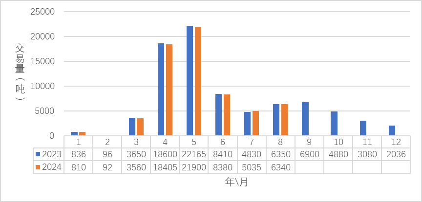 2023-2024(8月)浙南茶叶市场交易量(吨)