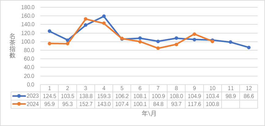 2023-2024(10月)中国茶业指数之地方名茶指数——信阳毛尖
