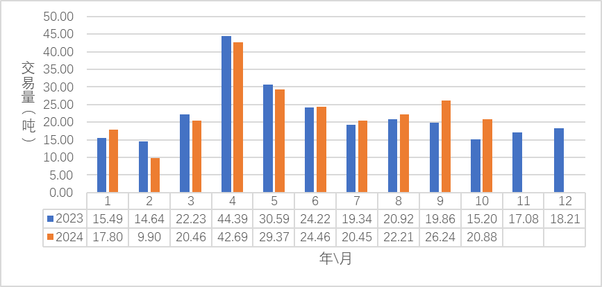 10月市场交易均价为1976.31元/千克,同比上涨4.65%。当月市场交易额为4126.43万元,同比增加43.72%。