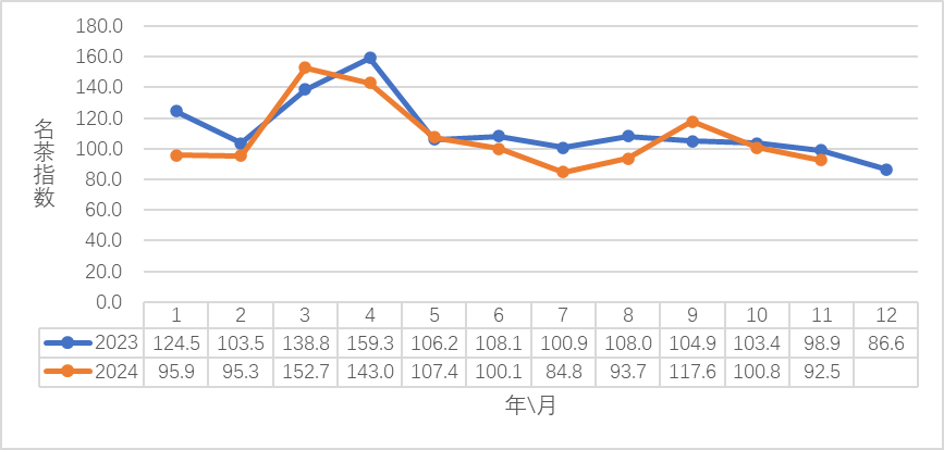 2023-2024(11月)中国茶业指数之地方名茶指数——信阳毛尖