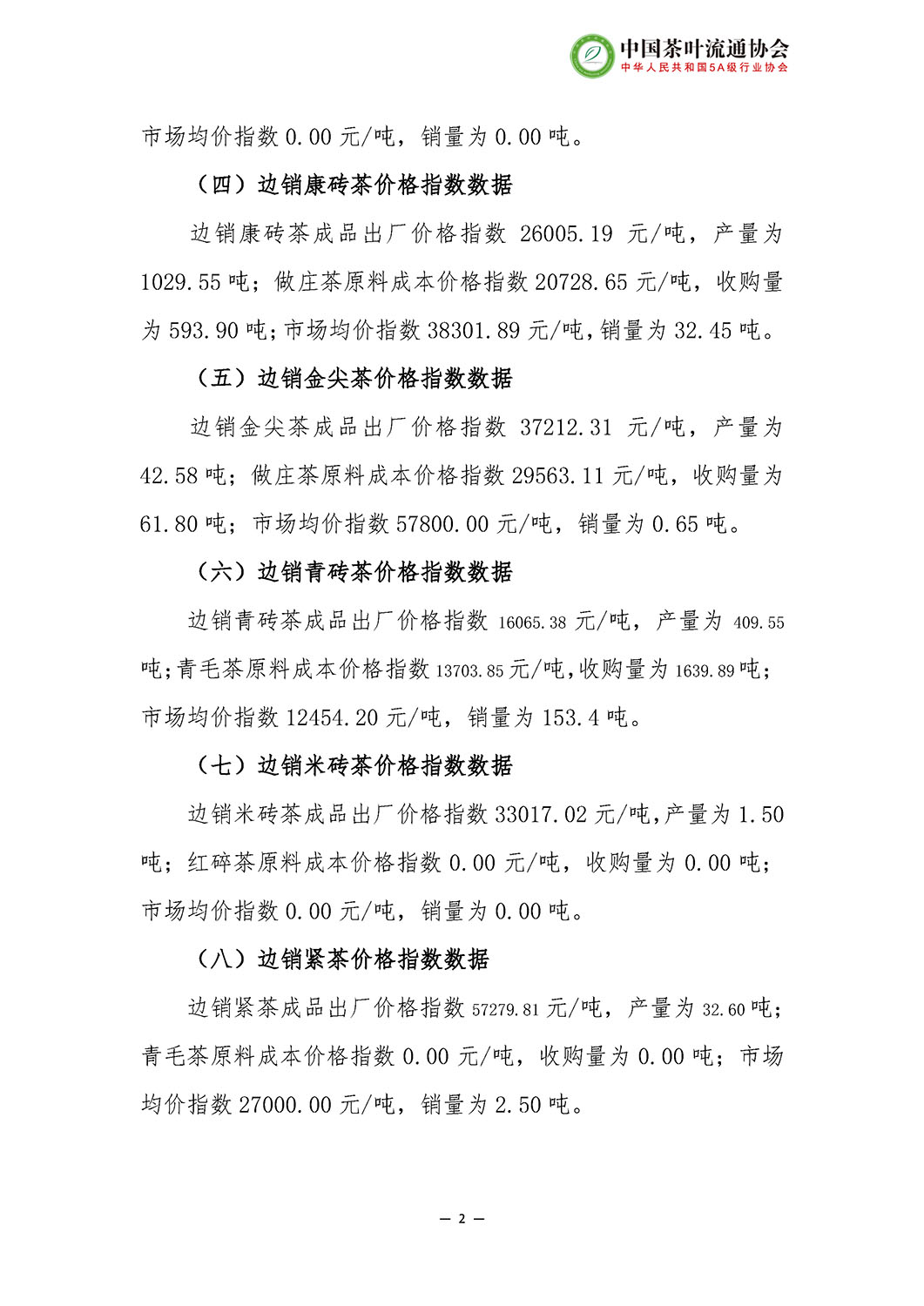 中国茶业价格指数