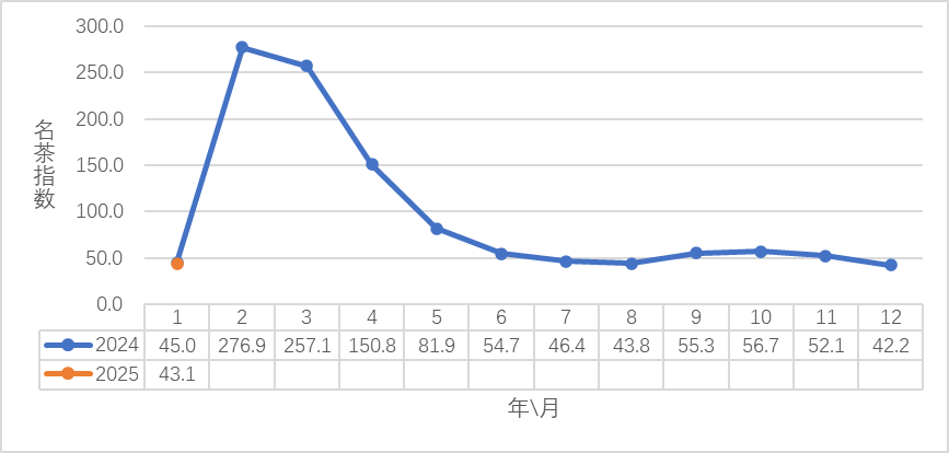 2024-2025(1月)中国茶业指数之地方名茶指数——新昌大佛龙井