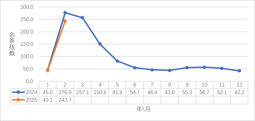 2024-2025(2月)中国茶业指数之地方名茶指数——新昌大佛龙井