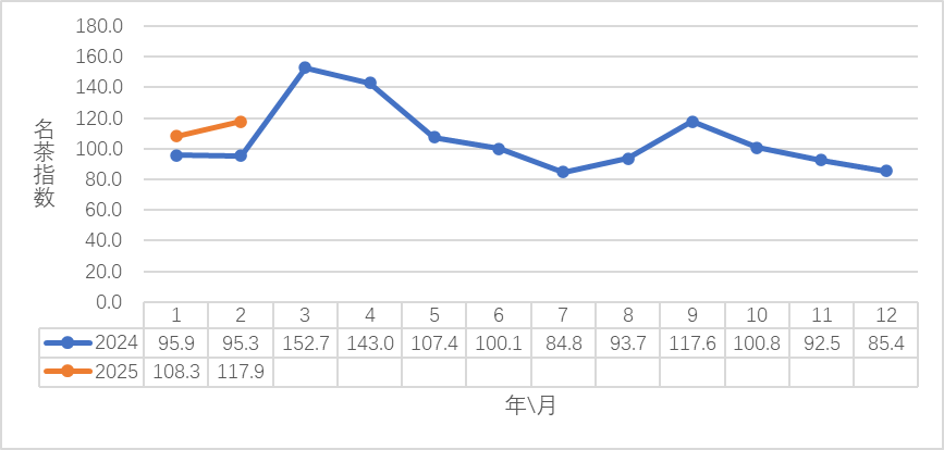 2024-2025(2月)中国茶业指数之地方名茶指数——信阳毛尖