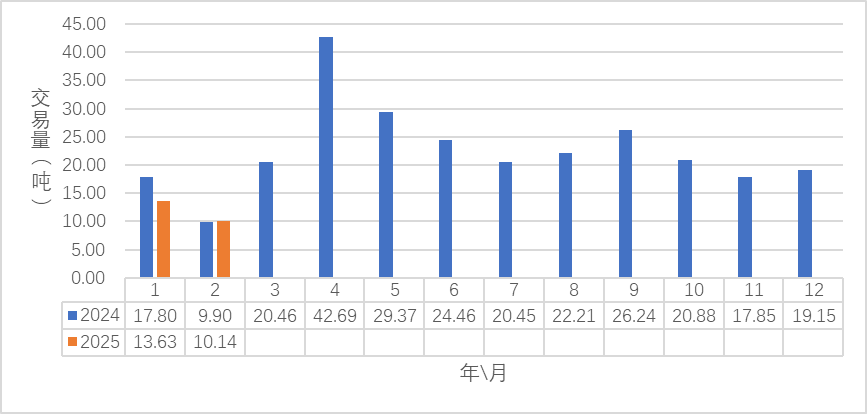 2月市场均价为2470.70元/千克,同比上涨32.17%。当月市场交易额为2505.10万元,同比上涨35.33%。