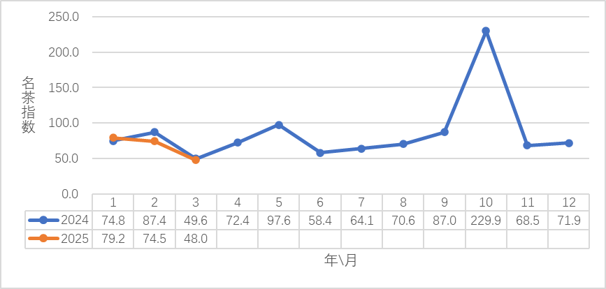 3月茶都市场铁观音交易指数为48.0,同比下降3.23%。