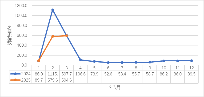 2024-2025(3月)中国茶业指数之地方名茶指数——松阳绿茶
