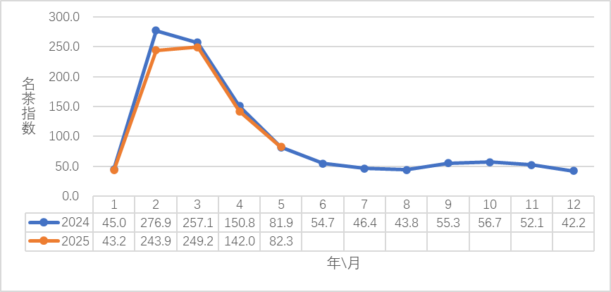 2024-2025(5月)中国茶业指数之地方名茶指数——新昌大佛龙井