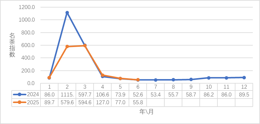 2024-2025(6月)中国茶业指数之地方名茶指数——松阳绿茶