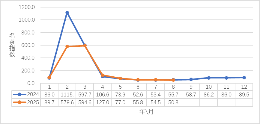 2024-2025(8月)中国茶业指数之地方名茶指数——松阳绿茶