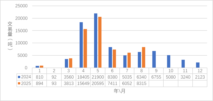 1-8月,浙南茶叶市场交易总量62822.67吨,同比减少2.63%,交易额582725万元,同比增加3.52%,交易均价92.76元/公斤,同比上涨6.23%。