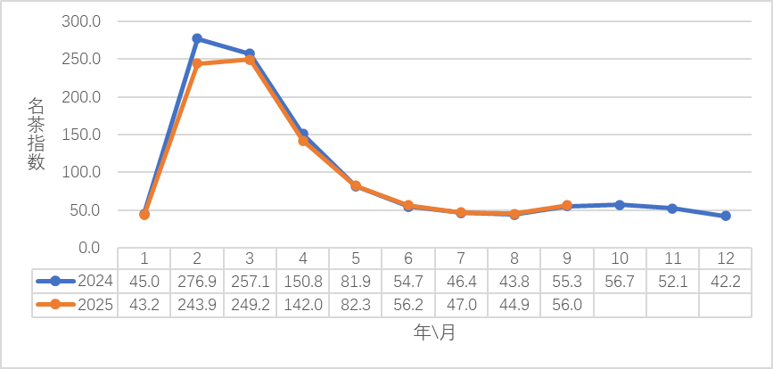 2024-2025(9月)中国茶业指数之地方名茶指数——新昌大佛龙井