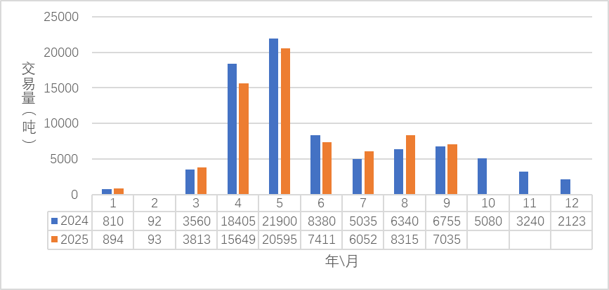 2025年1-9月,浙南茶叶市场交易量总69857.81吨,同比减少1.99%,交易总额616893.32万元,同比增加3.67%,交易均价88.31元/公斤,同比上涨5.77%。