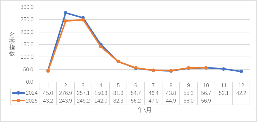 2024-2025(10月)中国茶业指数之地方名茶指数——新昌大佛龙井