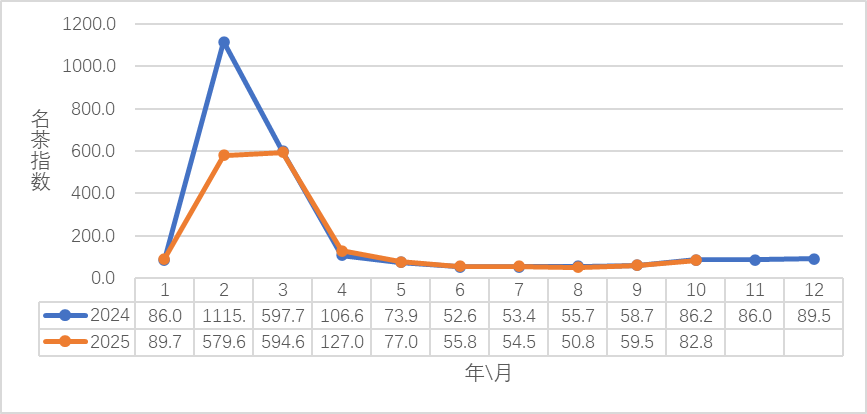 2024-2025(10月)中国茶业指数之地方名茶指数——松阳绿茶