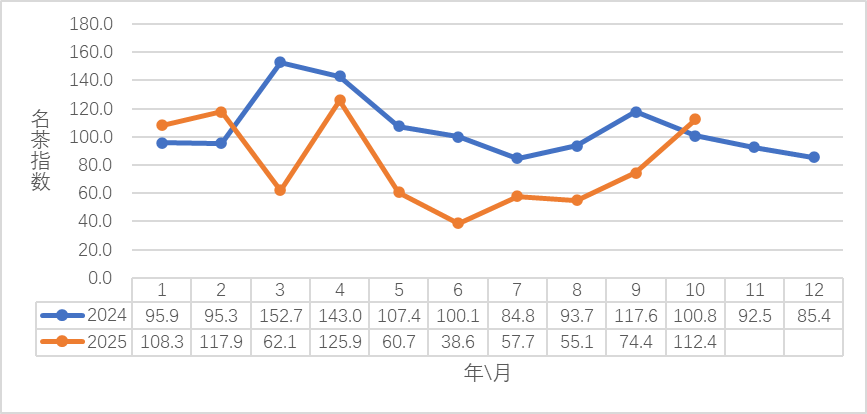 2024-2025(10月)中国茶业指数之地方名茶指数——信阳毛尖
