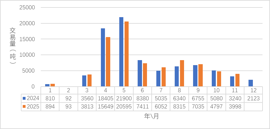 1-11月,浙南茶叶市场交易总量80653.3吨,同比增加1.33%;交易额678695.79万元,同比增加3.30%;交易均价84.15元/公斤,同比上涨1.95%。