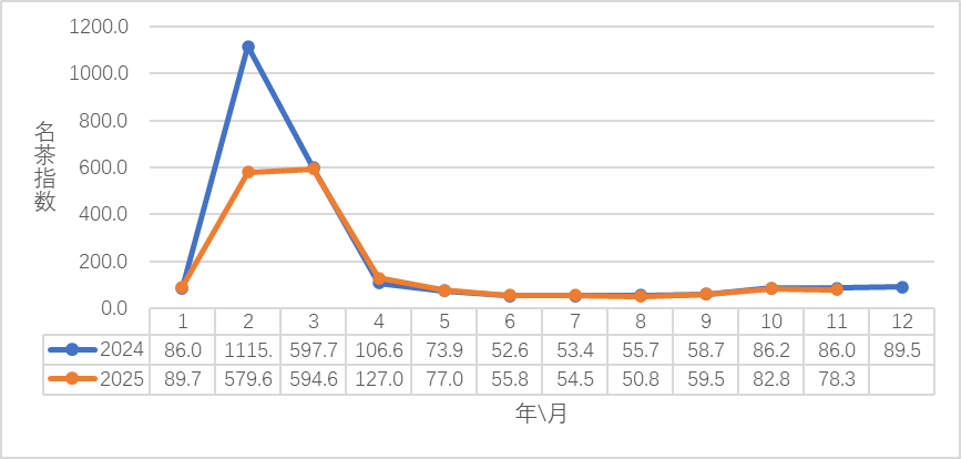 2024-2025(11月)中国茶业指数之地方名茶指数——松阳绿茶