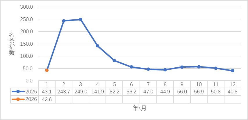 2025-2026(1月)中国茶业指数之地方名茶指数——新昌大佛龙井