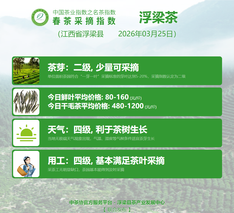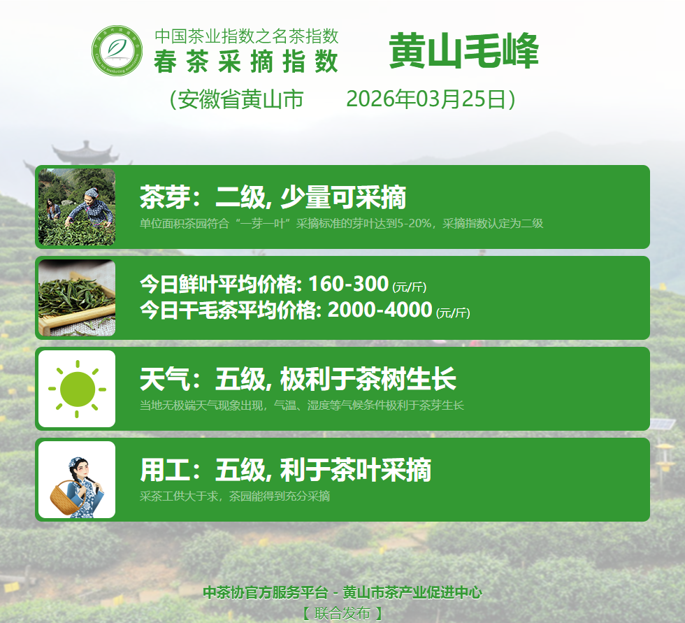 “春茶采摘指数”专区已上线中国茶叶流通协会官网。敬请关注,获取2026春茶采摘动态。