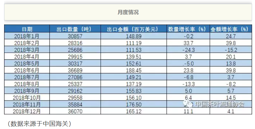 出口均价方面,茶叶出口均价已达到4.87美元/公斤,高出2017年均价0.33美元/公斤,涨7.23%,出口均价再创新高!成本倒挂是我国茶叶出口的主要问题之一,出口价格的提升将对此现象起到一定的缓解作用。