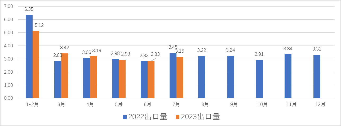 2023年7月中国茶叶出口量、额统计表(单位:万吨、亿美元)