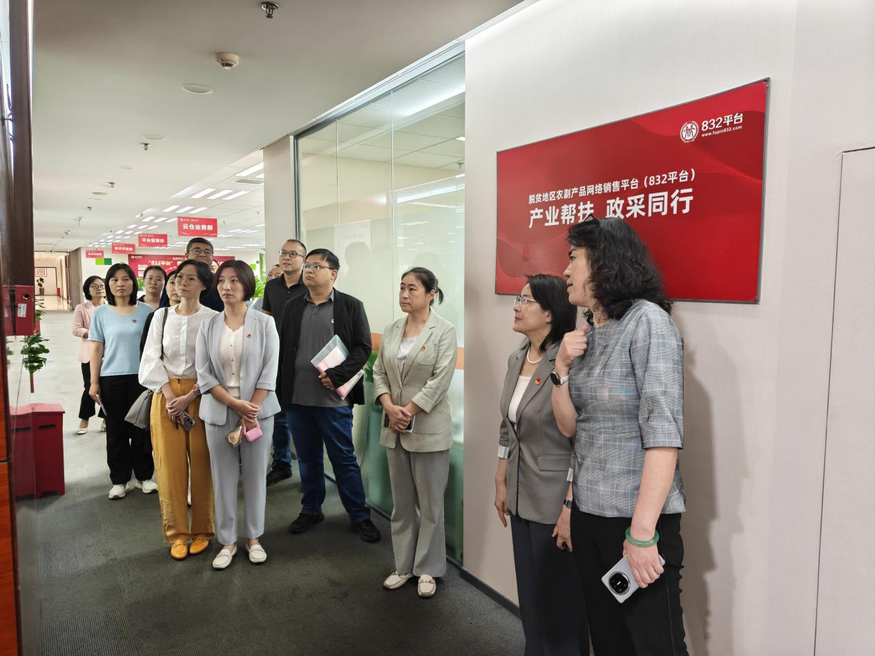 党员干部在电商公司(“832”平台),观看平台宣传片,了解公司基本情况及业务开展情况,参观品鉴脱贫地区农副产品包括茶叶产品,深入了解“832平台”发挥政府采购引领作用,创新消费帮扶新模式,巩固拓展脱贫攻坚成果等方面发挥的重要作用。