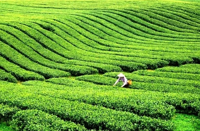 图为名山区中峰茶园生机盎然、碧绿如茵