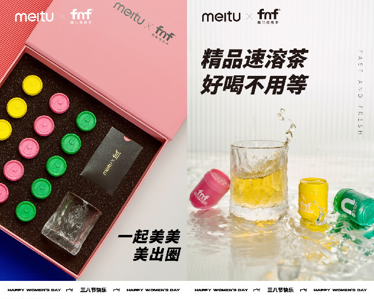 不论是通过精品速溶茶获得“健康之美”,还是借助影像科技提升“容颜之美”,fnf对健康美好的追求与美图“让每个人都能简单变美”的使命高度契合。以打造联名礼盒为契机,双方将通过优势互补创造更大价值,实现共赢。