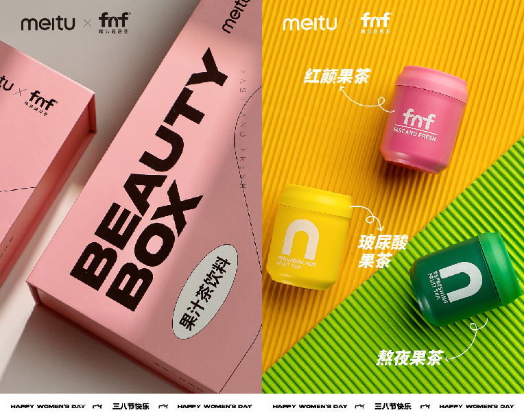 今年三八节期间,新式茶饮品牌fnf精品速溶茶携手美图公司推出“女神节”限定礼盒Beauty Box,致敬每一位向往美好、热爱生活的女性。