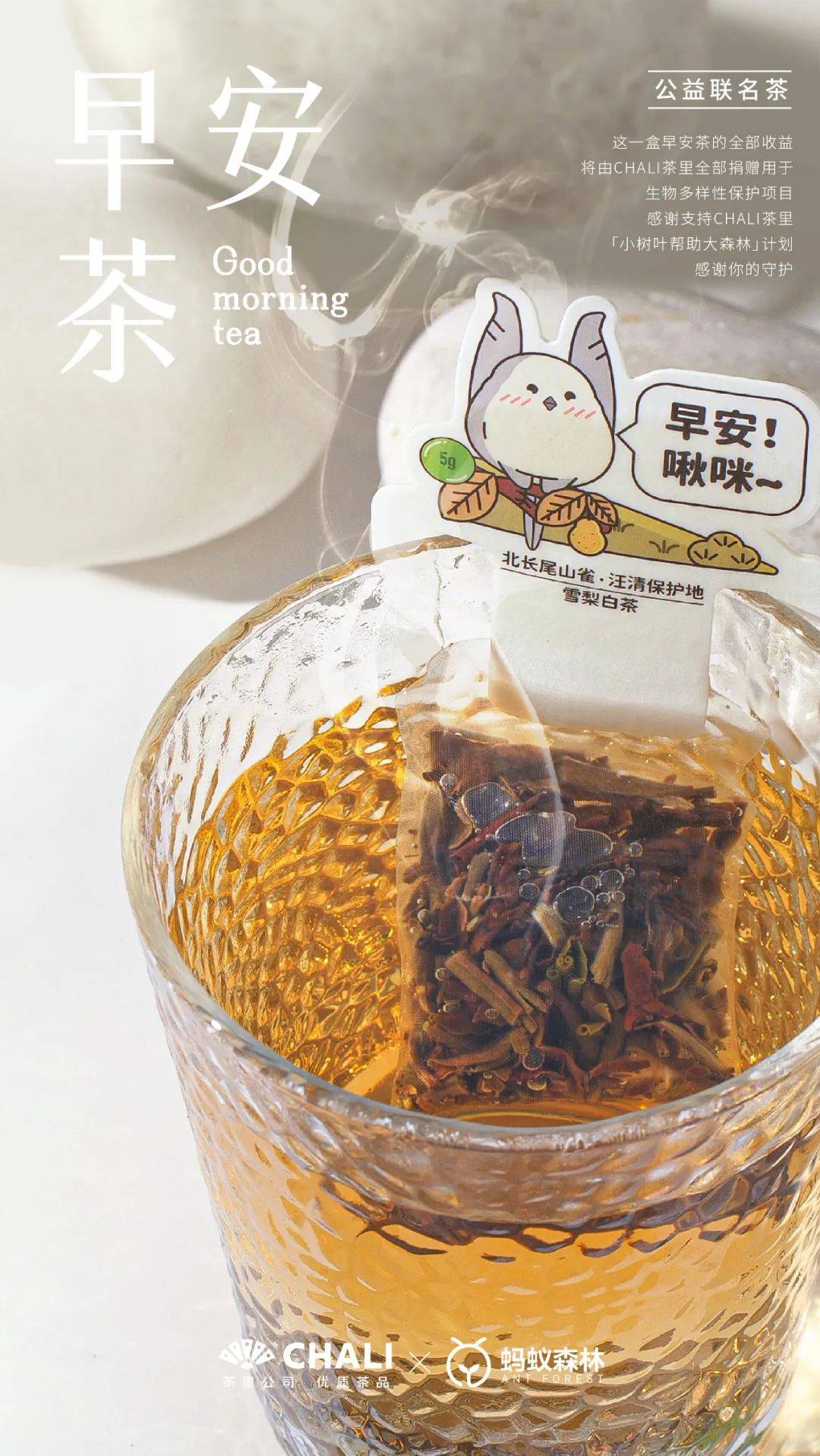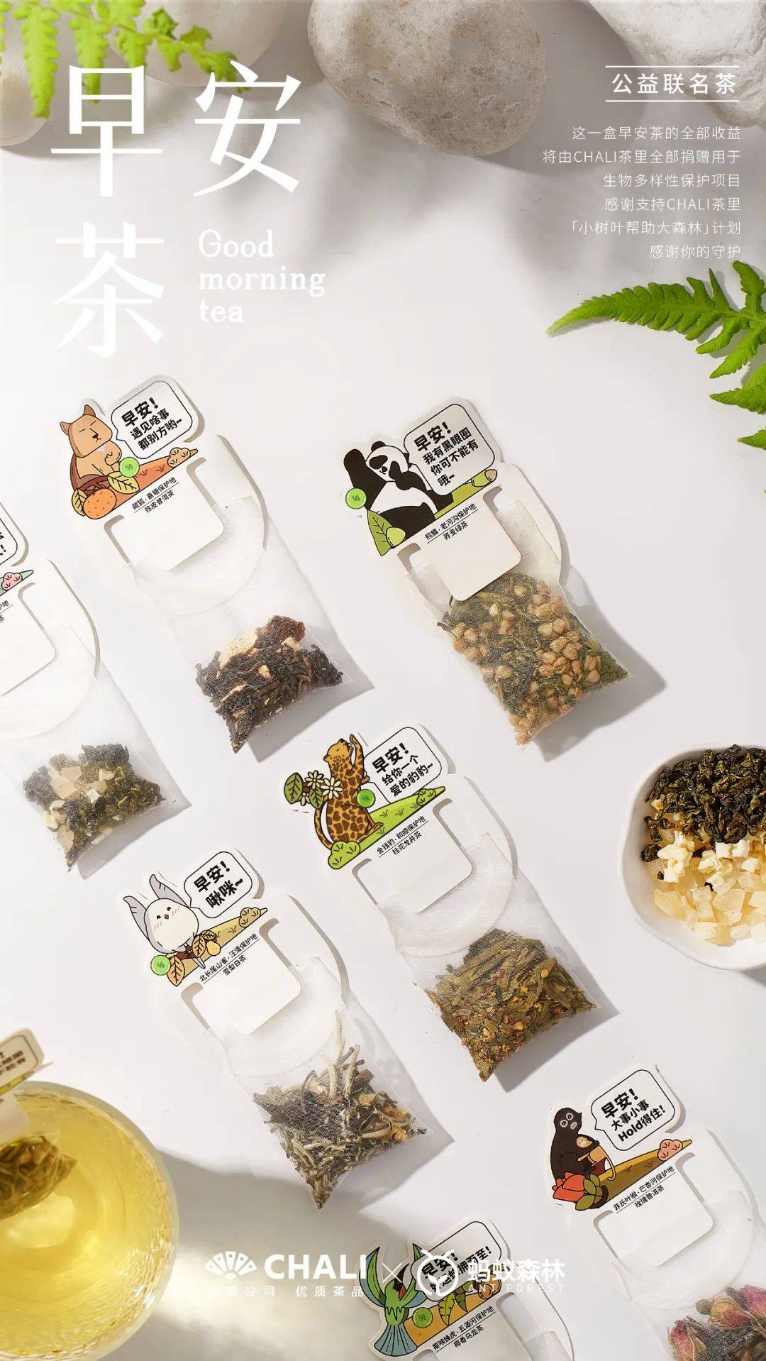 早安!CHALI茶里×蚂蚁森林「早安森林在茶里」视频上线!看动物们在森林里怡然自乐、畅享美好清晨~ CHALI茶里×蚂蚁森林联名「早安茶」正式亮相,看7只神奇物种与7款风味好茶温暖相遇。早安茶的所有收益将由CHALI茶里捐赠给生物多样性保护项目,小树叶帮助大森林,为美好生态助力!