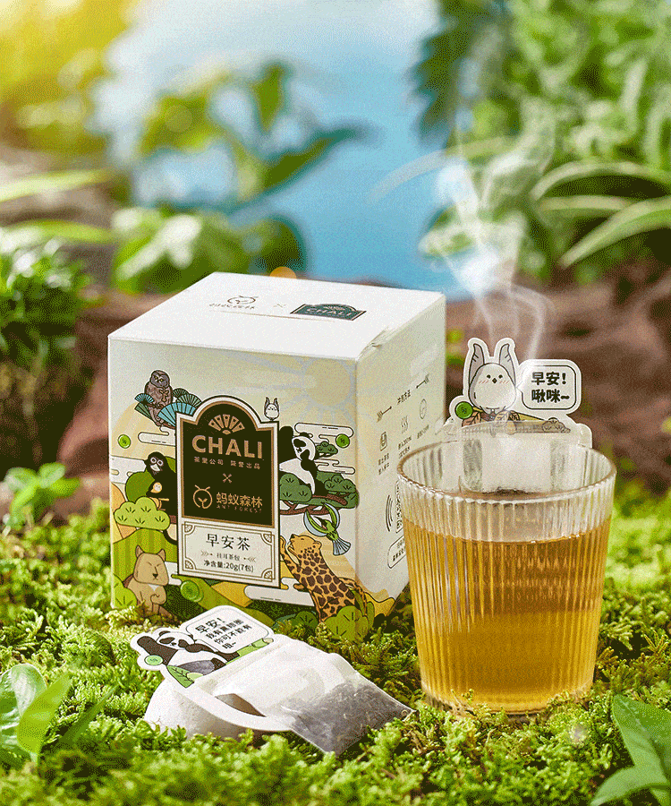 CHALI茶里以七种珍稀动物为灵感,推出限定联名礼盒动物早安茶,让远在森林里的“神奇物种”贴近年轻人的日常生活,用一杯早安茶唤醒他们的活力清晨,发出“保护生物多样性,享受绿色生活”的号召。