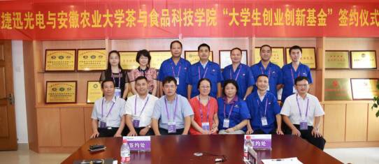 以社会责任为己任,护佑梦想扬帆起航。安徽捷迅光电技术有限公司积极与安徽农业大学茶与食品科技学院合作,建立“大学生创业创新基金”。