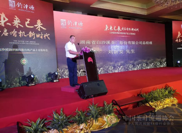 会上,湖南省白沙溪茶厂股份有限公司总经理刘新安先生首先致欢迎辞。他说,钧泽源有机茶产品还有着由天时地利带来的特殊的人文故事。象征着白沙溪百年根基万世传承的茶人精神,饱含着入士晋相、加官晋爵、门庭显赫之意蕴,当您品着这杯茶时,必是家风、国威、父孝、子贤皆兼具于茶品,瞬间精神为之一振,其贡献担当之力倍增,其茶亦带着灵气带着吉祥而更为珍贵。
