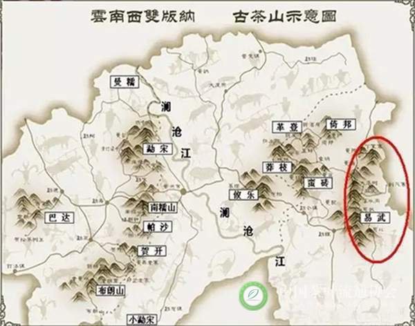 图为:云南西双版纳古茶山示意图中的易武茶区