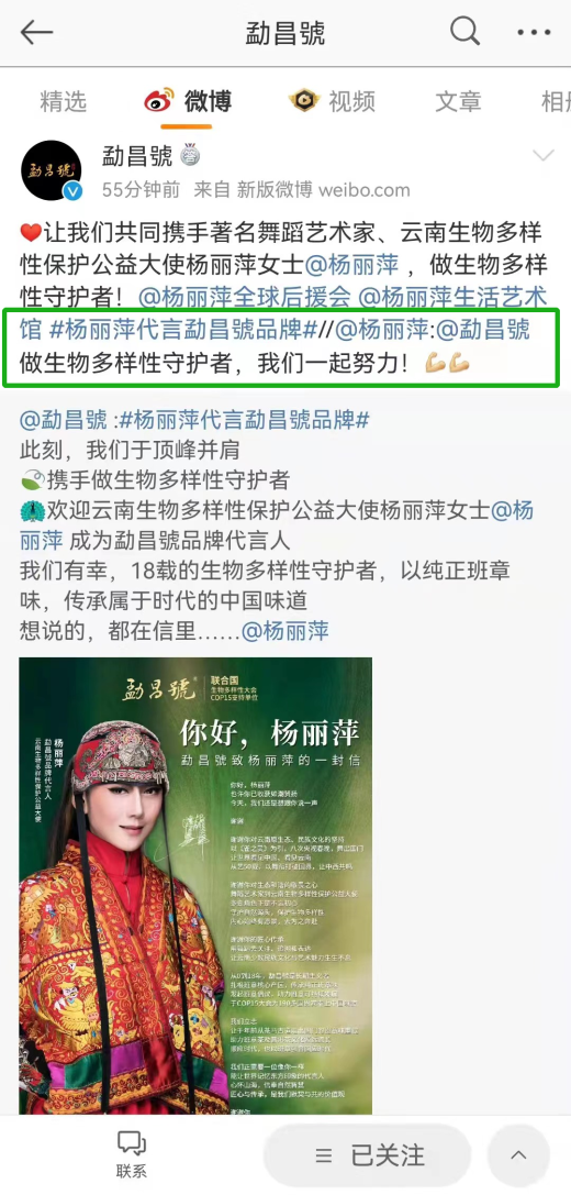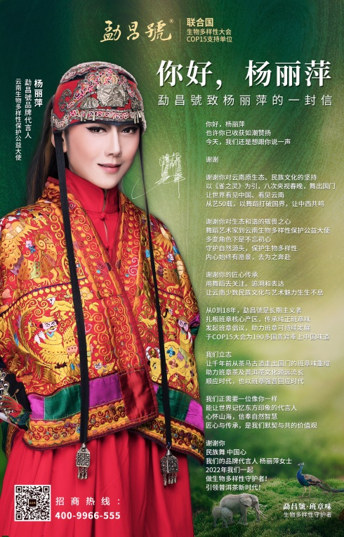 近日,著名舞蹈艺术家、云南生物多样性保护公益大使杨丽萍回复了勐昌號的一封信,正式成为勐昌號品牌代言人,做生物多样性守护者。