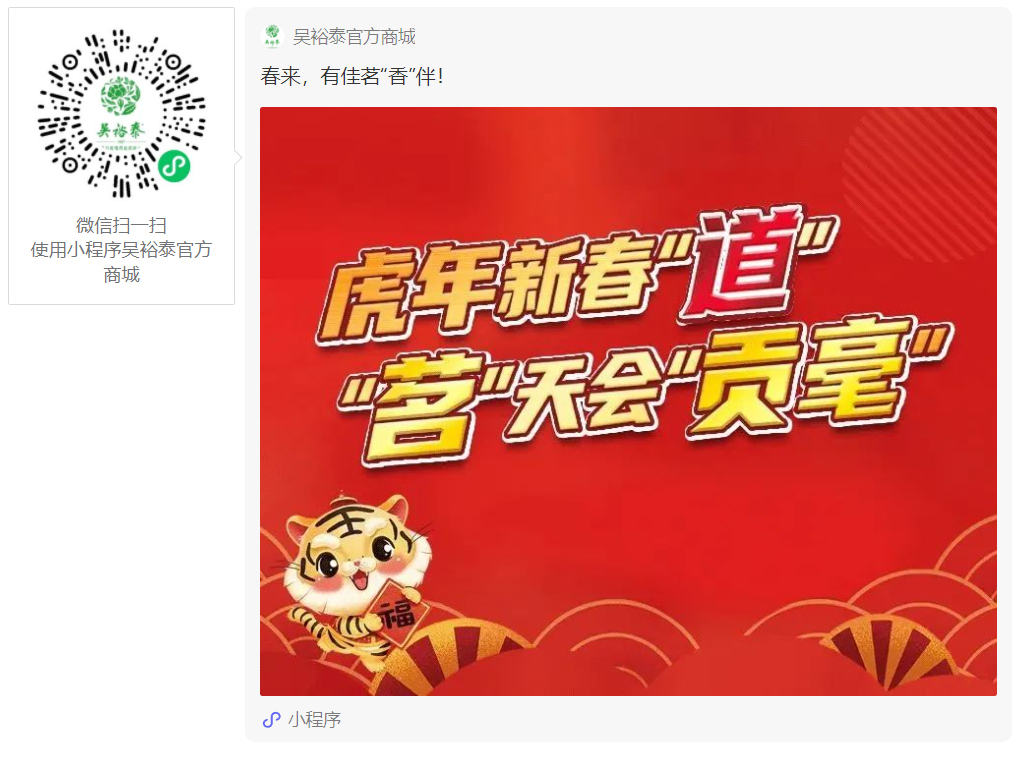 虎年新春“道”,“茗”天会“贡毫”福利惠享中!线下请到附近门店购买,线上请点击下方吴裕泰官方商城下单吧!
