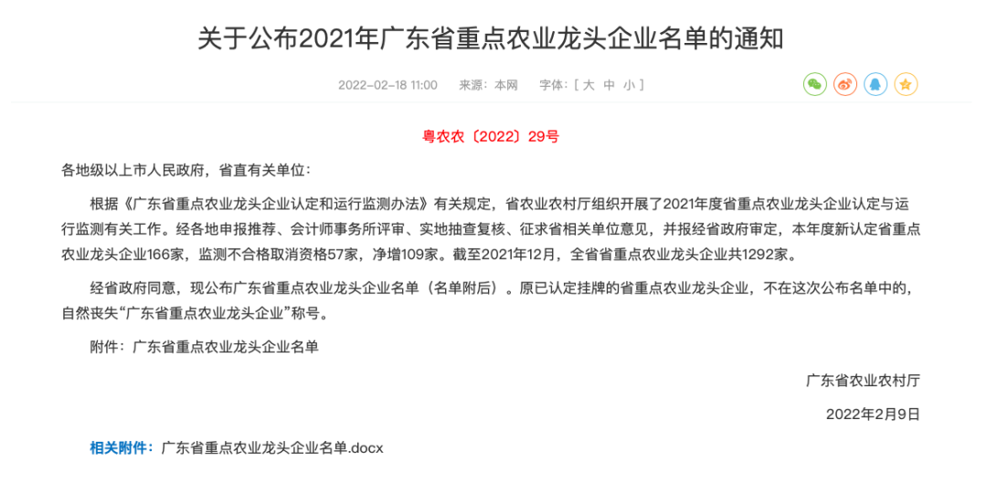 近日,广东省农业农村厅发布的《关于公布2021年广东省重点农业龙头企业名单的通知》通报,历经广东省政府及相关部门的层层审批考核,中吉号茶业最终被评选为“广东省重点农业龙头企业”,作为深圳市89家上榜企业的一员荣登榜单。