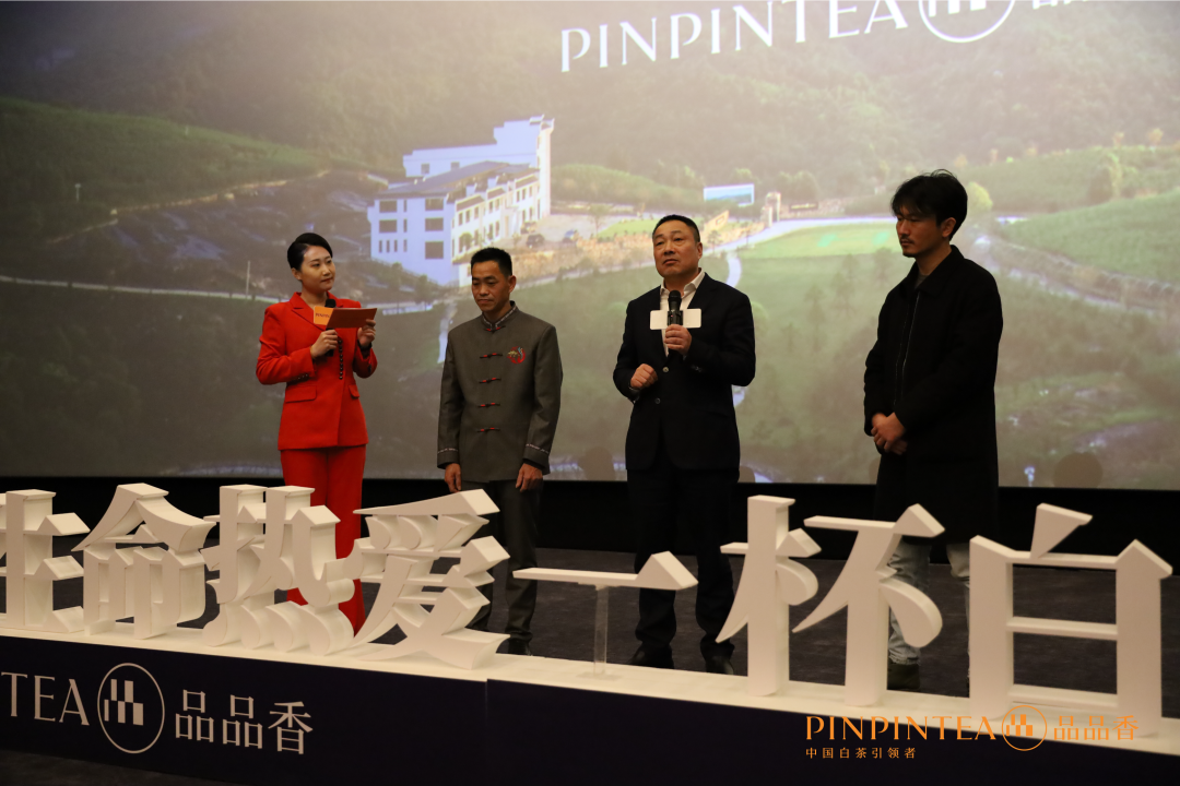 品品香茶业董事长林振传先生为到场嘉宾分享了影片制作初心,他表示:中国是茶的故乡,“好茶是种出来的”。因此,组织茶农按照标准种茶,做好茶园管理十分重要。2018年以来,秉承着“一片叶子美好千家万户” 的初心,林振传董事长运用现代茶业产业化联合体的经营模式每日深入白茶产区,指导茶农如何种茶,把分散的茶农链接起来,从源头把控茶青质量,同时助力乡村振兴。