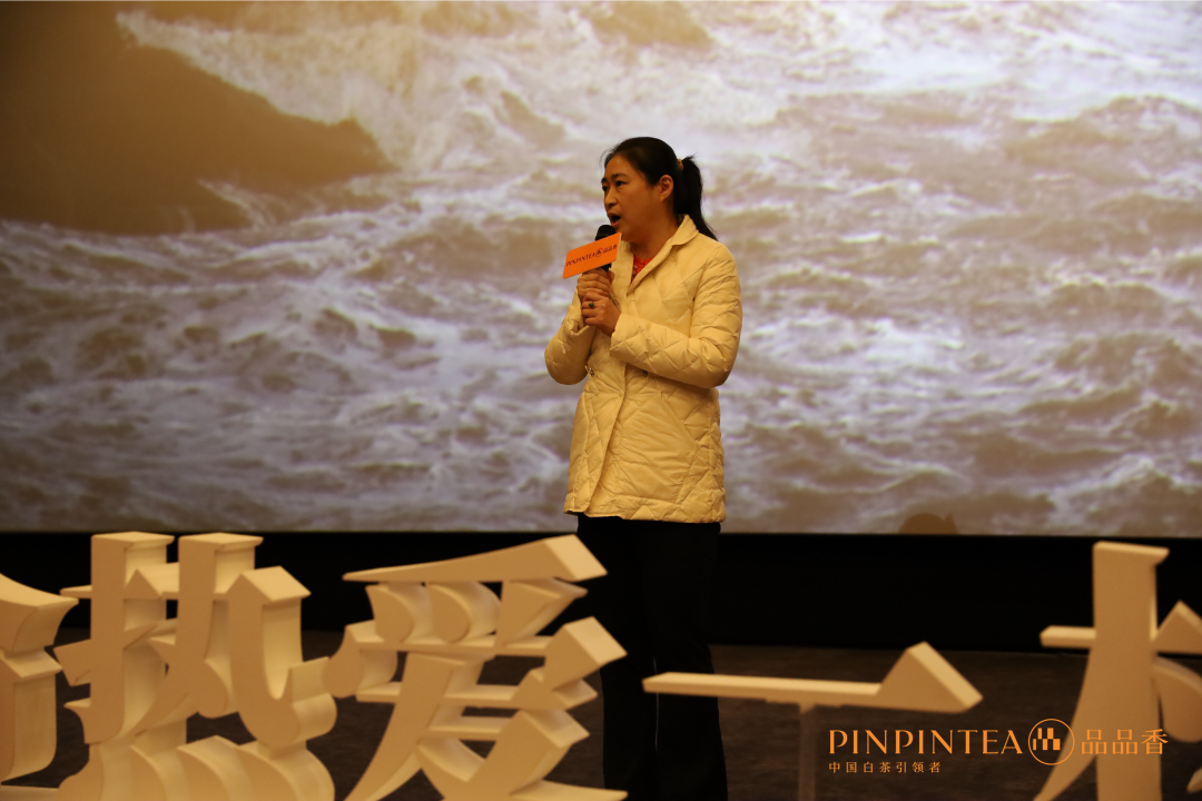 影片结束后,中国茶叶流通协会副会长姚静波女士受王庆会长委托,对活动的成功举办表示热烈祝贺,并发表了观影感言,她表示:《用生命热爱一杯白茶》记录了一代茶人的艰辛历程,记录了品品香茶业董事长林振传先生在白茶发展中走过的路。品品香茶业作为中国白茶品牌的责任担当,在中国白茶发展中发挥至关重要的作用。影片用一种质朴的语言真实记录了茶人的情怀,比起华丽的辞藻和美丽的图片,更加令人有代入感。林振传董事长及品品香茶人三十年来始终坚持做好一杯茶,坚持不懈推动有机茶发展,令人深受感动。品品香连续多年荣获协会百强企业称号,是当之无愧的行业领军品牌,是“中国制茶大师”,体现了一代茶人的工匠精神。对于企业而言,品品香做到了“守专长,创新品,建标准”;对社会来说,品品香也承担了相应的责任。“不积跬步,无以至千里;不积小流,无以至海洋”。希望林振传董事长始终坚守初心,坚守“以茶为生,以茶为业,以茶为乐”的信条,带领团队为中国白茶越做越强奉献出坚实的一份力量。全国茶人共同携手,为中国茶产业在实现乡村振兴的道路上起到更高更长远的作用,让茶产业在未来更加美好,更加辉煌!