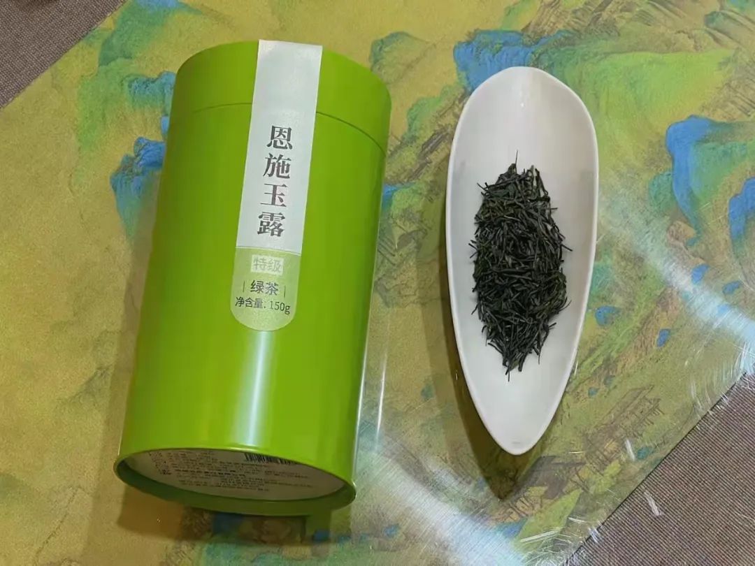 恩施玉露-中国湖北历史名茶。产于世界硒都——湖北恩施。沿用唐朝流传下来的蒸青工艺。国家地理标志产品。恩施玉露具有“三绿一鲜”的特点。条索翠绿挺直,汤色嫩绿透亮,叶底青绿明亮,滋味鲜醇回甘,香气清高鲜爽,是绿茶中的珍品。