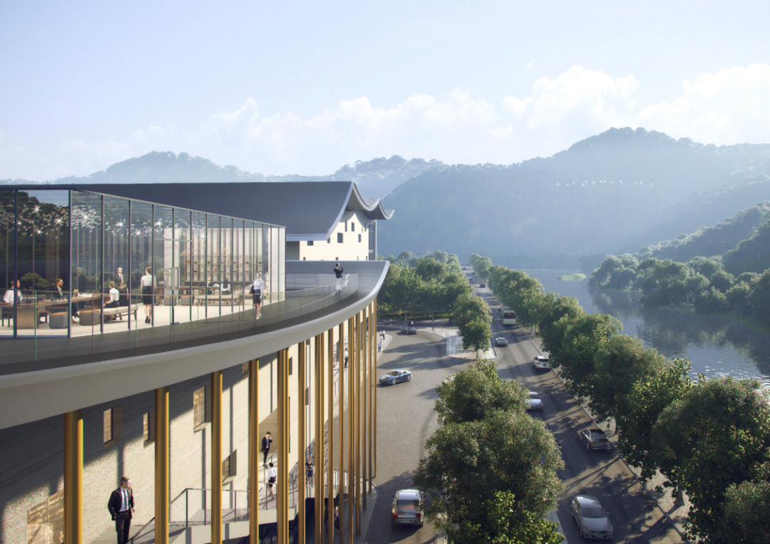 最后,张朝斌先生还别出心裁的在屋顶建造茶园,在靠大樟溪的一侧设计了玻璃茶室,让观众能够享受360度的山景和淙淙溪流的自然景观,有望成为下一个网红地标。