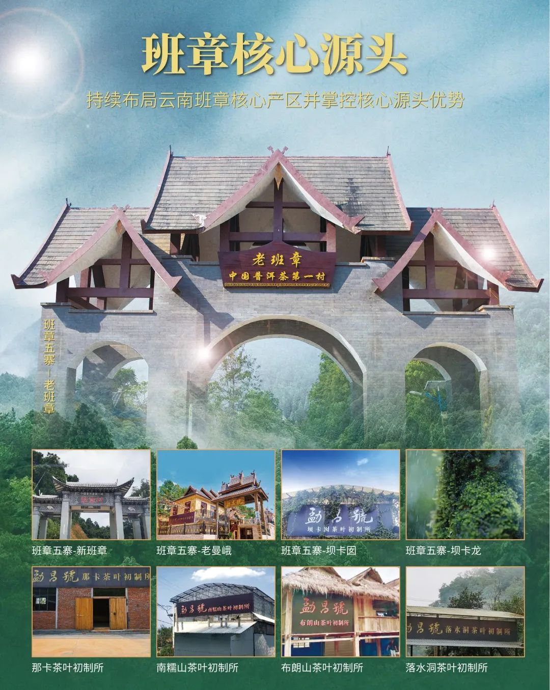 自2003年起,勐昌號便已深入云南普洱茶核心产区,掌控班章源头核心资源,于勐海建立3万多平的现代化工厂,在老班章村建立4千多平拥有SC资质的生产基地。以纯正原料为基础、工艺流程做标杆、科研技术化标准,勐昌號始终践行着传承纯正“班章味”的承诺。